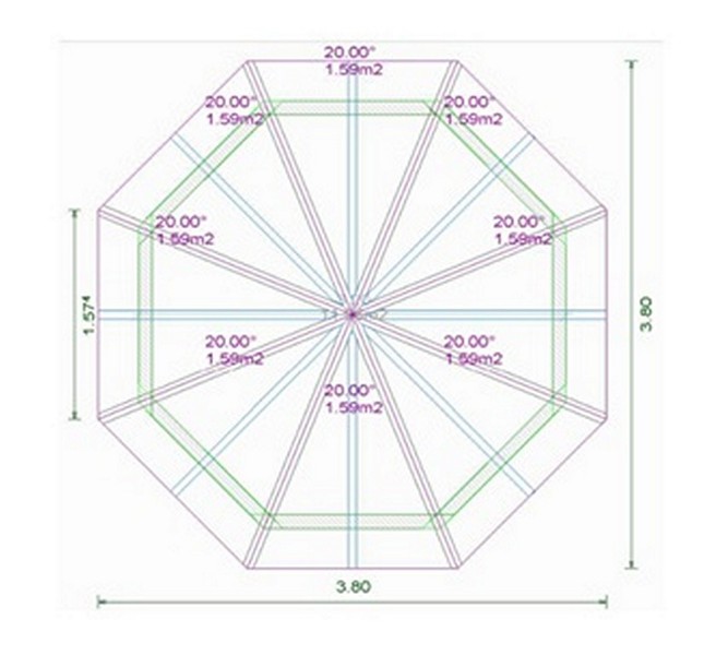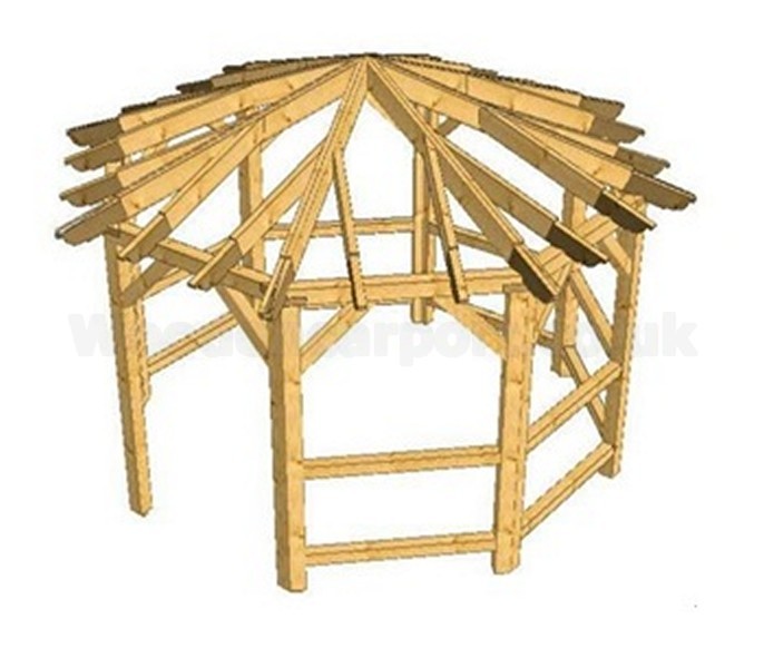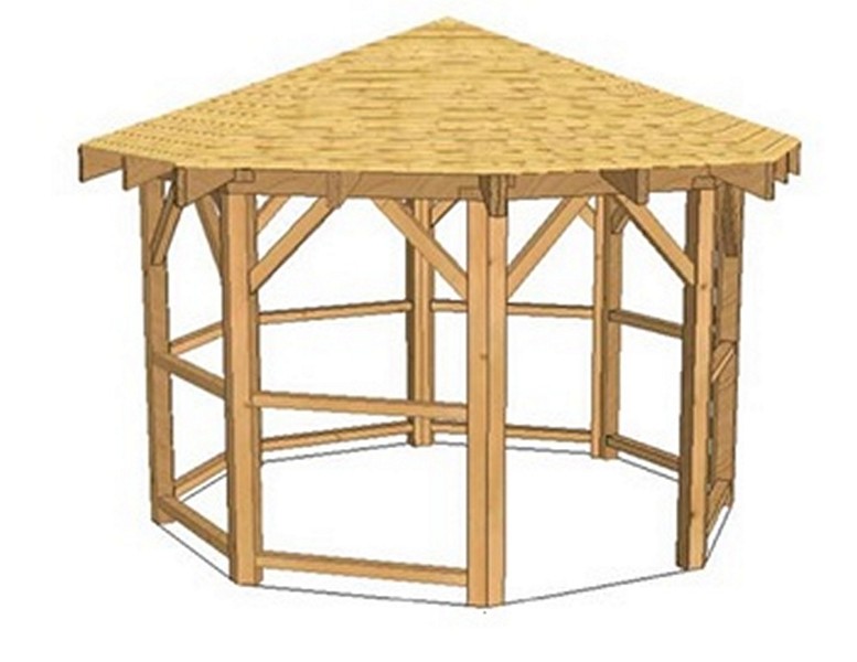 There is a garden gazebo made of solid structural timber KVH (spruce) kilin-dried to a