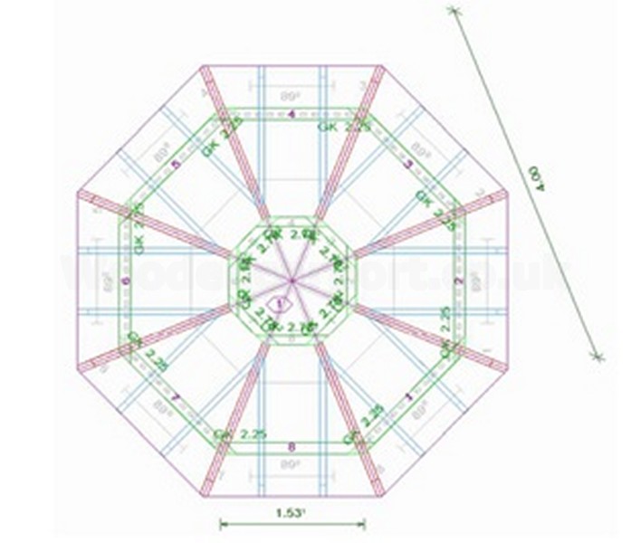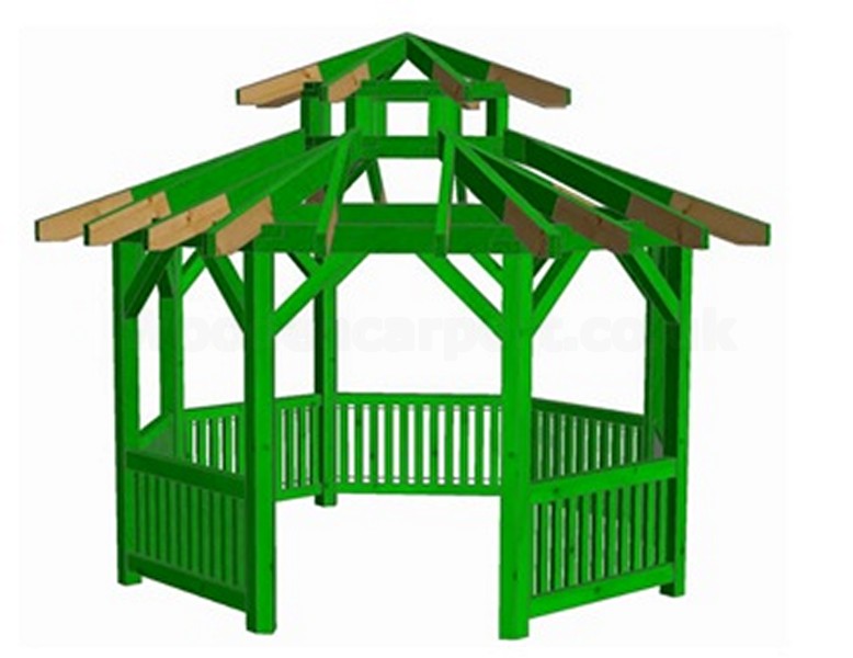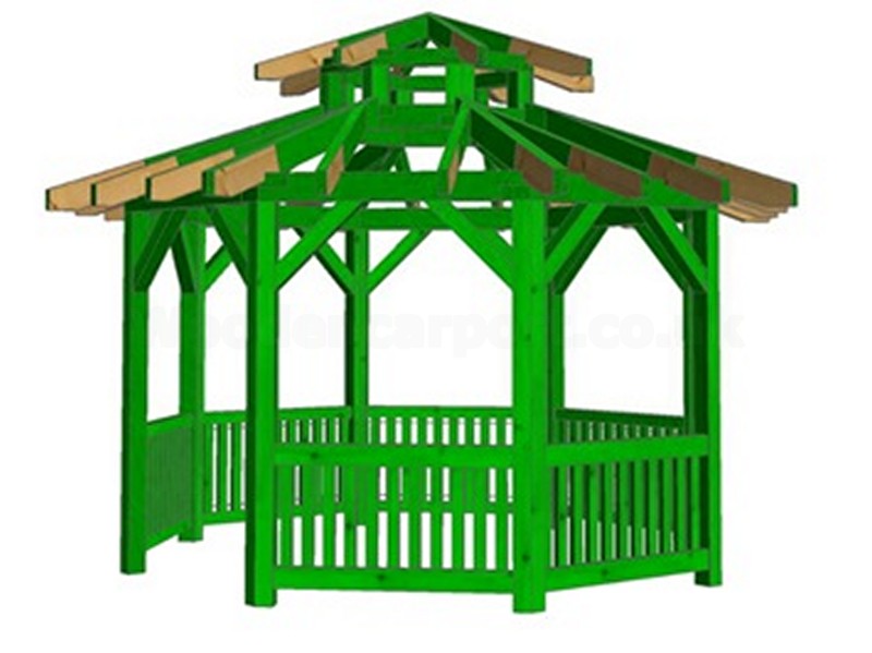 There is a garden gazebo made of solid structural timber KVH (spruce) kilin-dried to a