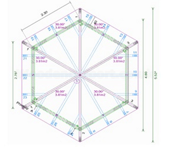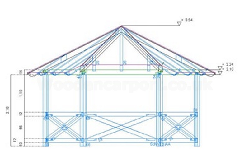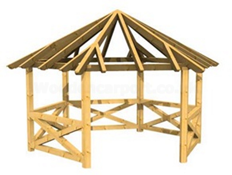 There is a garden gazebo made of solid structural timber KVH (spruce) kilin-dried to a