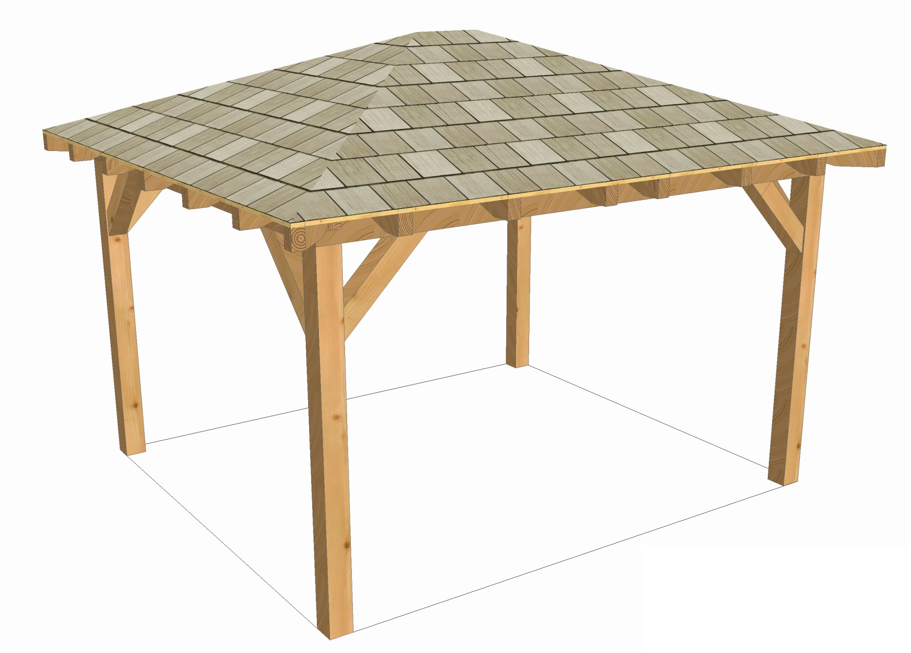 There is a garden gazebo made of solid structural timber KVH (spruce) kilin-dried to a
