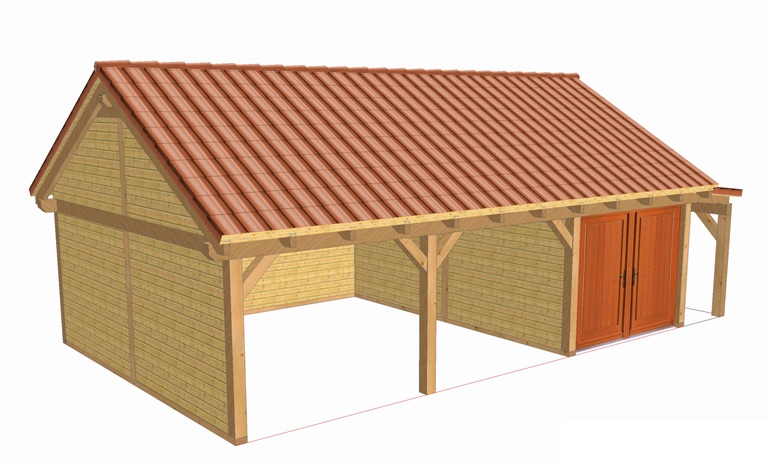 There is a double bay carport made of solid structural timber KVH (spruce) kilin-dried to a