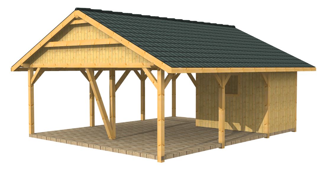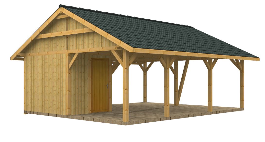 There is a double bay carport made of solid structural timber KVH (spruce) kilin-dried to a