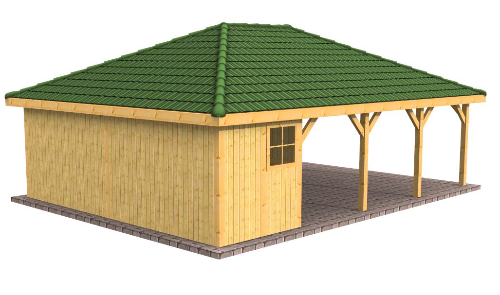 There is a double bay carport made of solid structural timber KVH (spruce) kilin-dried to a
