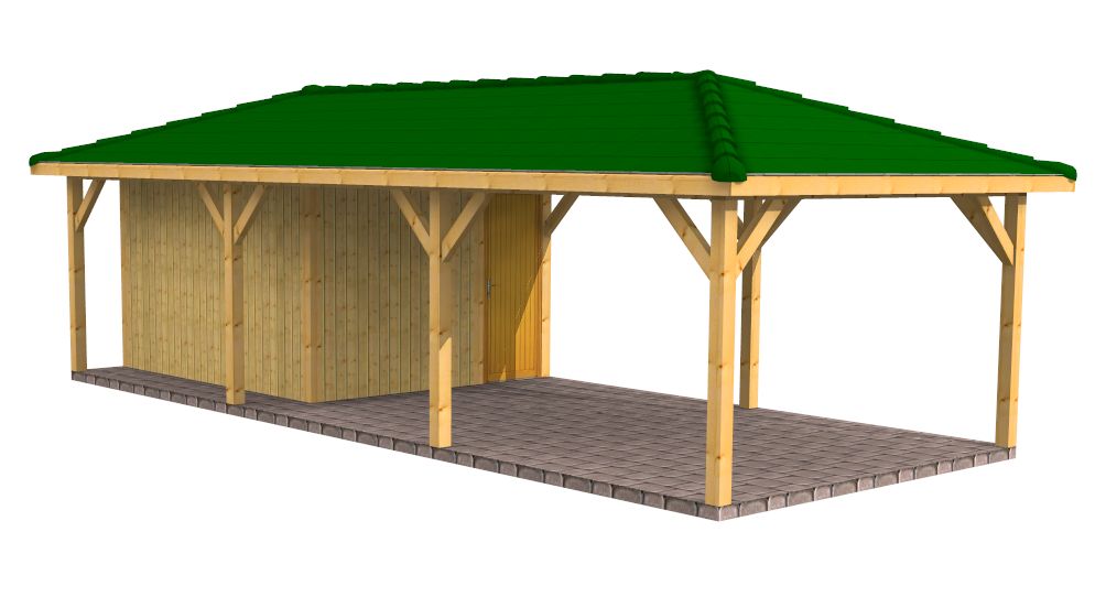 There is a single bay carport made of solid structural timber KVH (spruce) kilin-dried to a