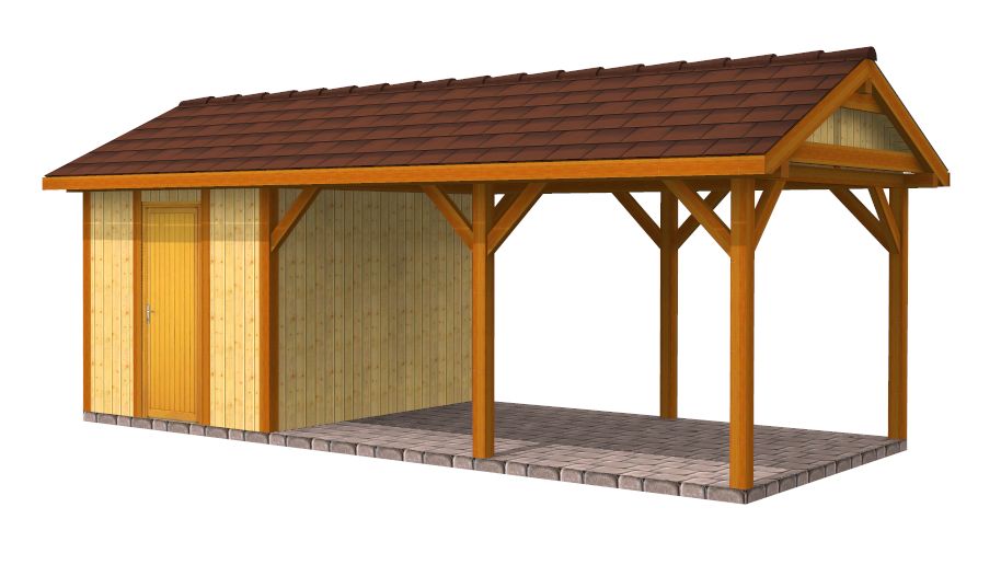 There is a single bay carport made of solid structural timber KVH (spruce) kilin-dried to a