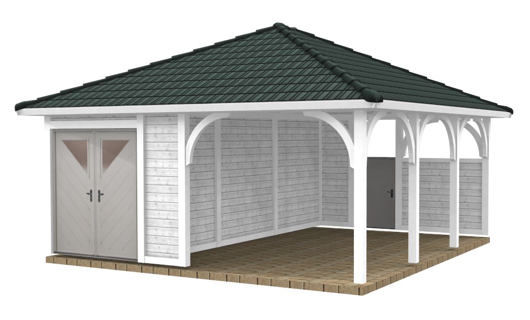 There is a single bay carport made of solid structural timber KVH (spruce) kilin-dried to a